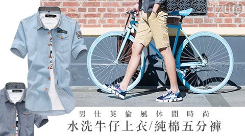 平均每件最低只要349元起(含運)即可購得男仕英倫風休閒時尚水洗牛仔上衣/純棉五分褲任選1件/2件/4件,多色多尺寸任選。
